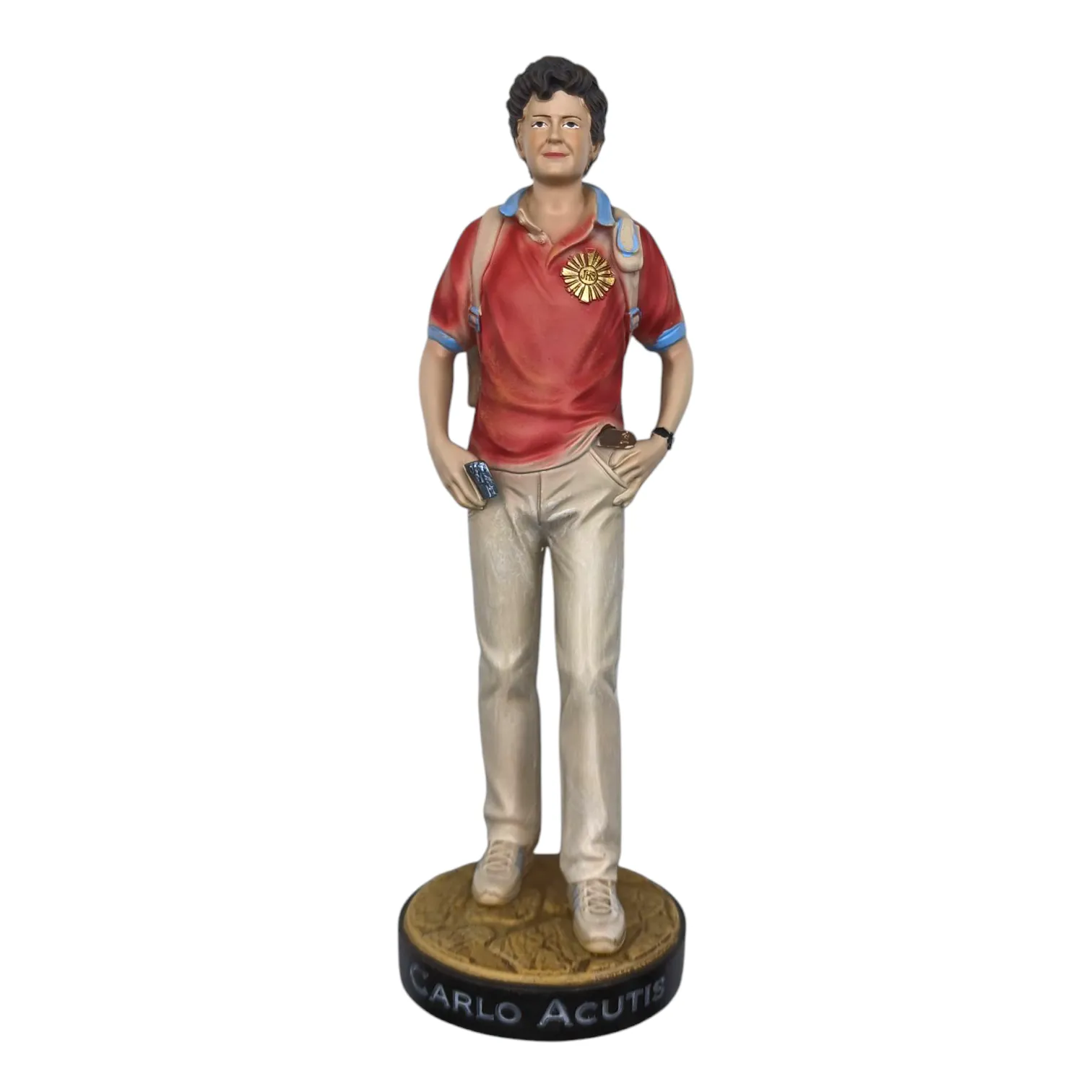 Statua di San Carlo Acutis da cm. 30 realizzata in resina con colorazione tipo legno.